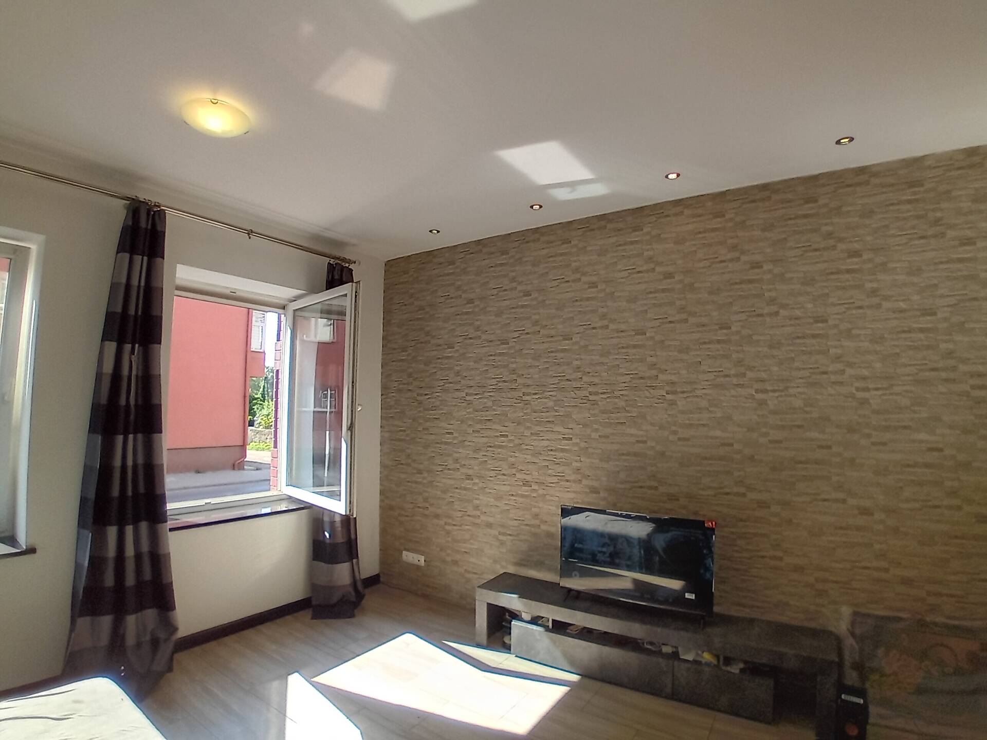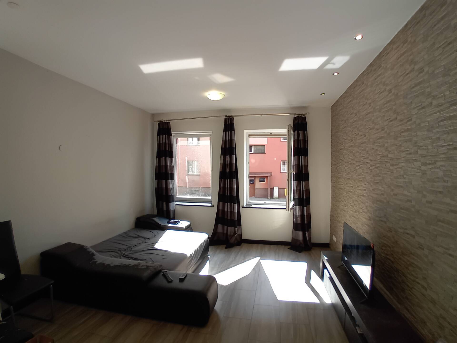 Mieszkanie znajduje się na wysokim parterze i składa się z trzech pokoi. Wchodząc jest przestronny hol. Po lewej stronie znajduje się nowoczesna kuchnia w zabudowie w kolorze czarno białym. Z holu wchodzimy do pralni, gdzie jest również umieszczony kocioł gazowy na ciepłą wodę i ogrzewanie. Na przeciw pralni jest toaleta z wc, bidetem i umywalką. Na końcu holu znajduje się łazienka wyposażona w wannę, prysznic oraz umywalkę. Po drugiej stronie otwartego przedpokoju wchodzimy do przestronnego salonu z dwoma oknami wychodzącymi na ulicę. Po drugiej stronie holu są jeszcze dwa pokoje, z oknami, z których widok rozpościera się na ogródek. Całość mieszkania jest po generalnym remoncie, a aranżacja wnętrza wykonana jest w nowoczesnym stylu